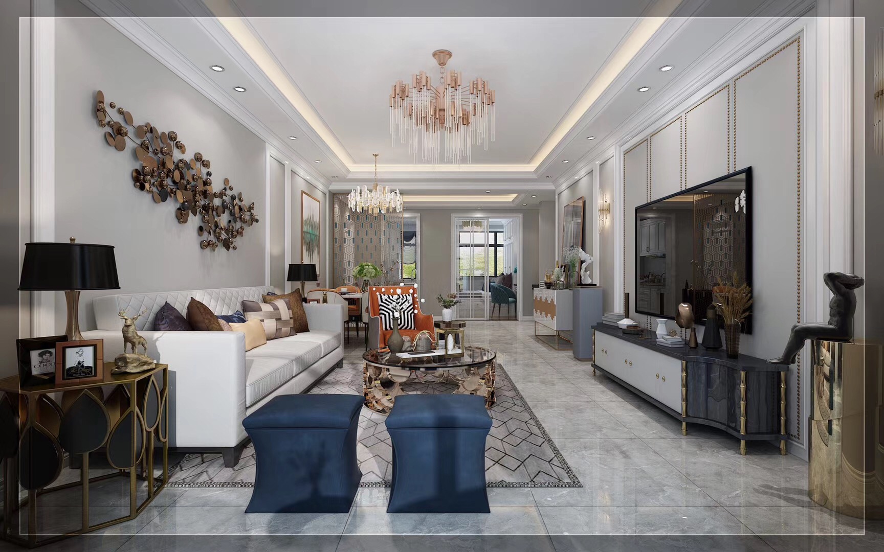 吾悅和府124平三室兩廳兩衛(wèi)現(xiàn)代輕奢裝修,現(xiàn)代輕奢風(fēng)的設(shè)計(jì),處處透著高級(jí)的氣息