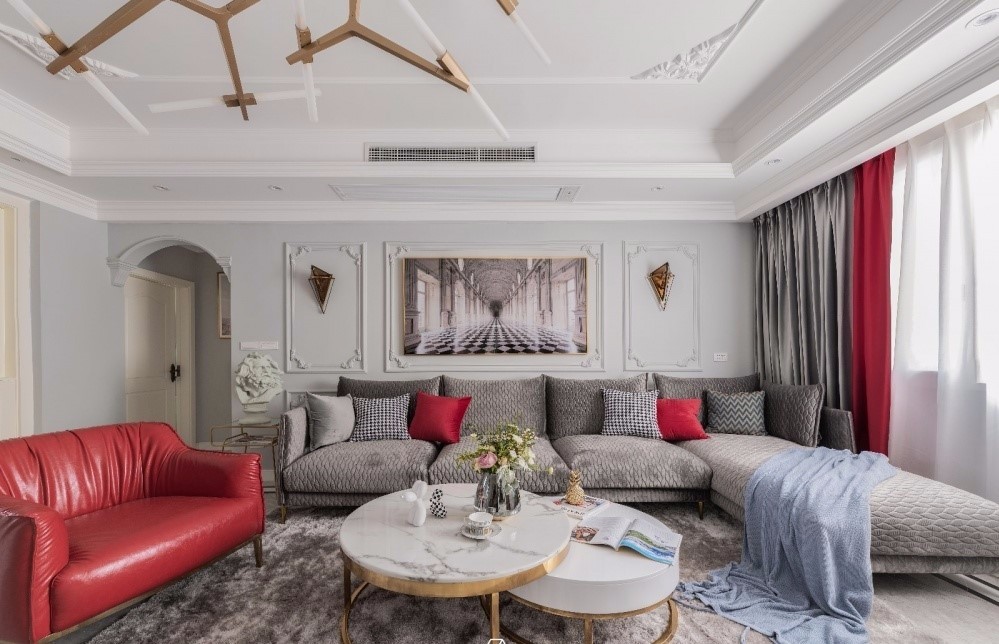 利用極具“庸俗”和“浮夸”的歐式石膏雕花和線條與高級灰的墻面碰撞。